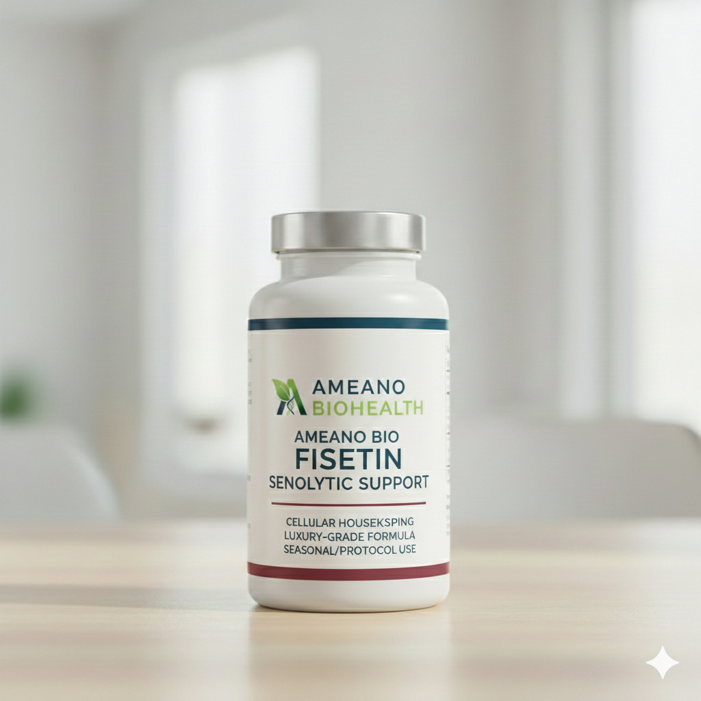 A luxury-grade fisetin formula designed for seasonal or protocol-based cellular housekeeping routines.